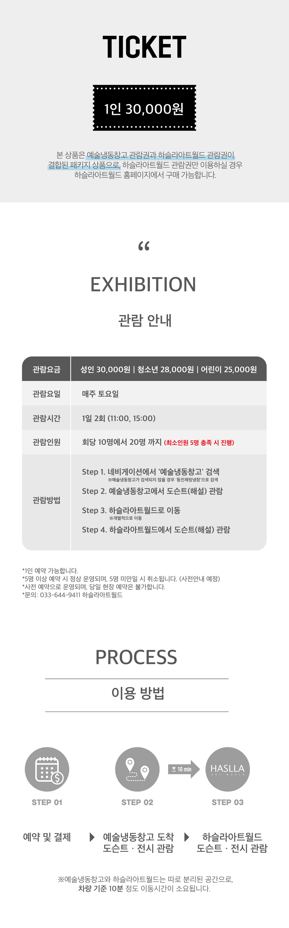 하슬라아트월드 관람권만 이용하실 경우, '하슬라 관람권'을 구매해주시기 바랍니다.